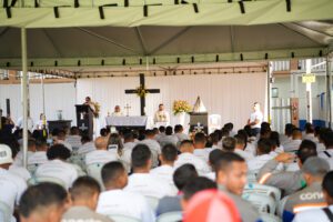 Na manhã do dia 18 de setembro, o Centro Logístico de Barcarena (CLA) foi palco de uma celebração que foi além da religiosidade: a tradicional Missa de Nossa Senhora de Nazaré — que integra o calendário do Círio — reuniu cerca de 800 pessoas em um encontro marcado pela fé, pela emoção e pela força da cultura paraense.
